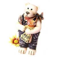This is from the Boyds Bears Tender Times Collection. He is made of bisquenne. 6.75" tall. He is ready to help in your garden. He is holding seeds, flower pot and shovel.